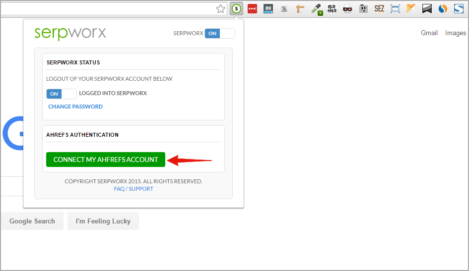 *Note: after you connect your ahrefs' account, click on the SerpWorx chrome extension icon to fully activate ahrefs functionality -